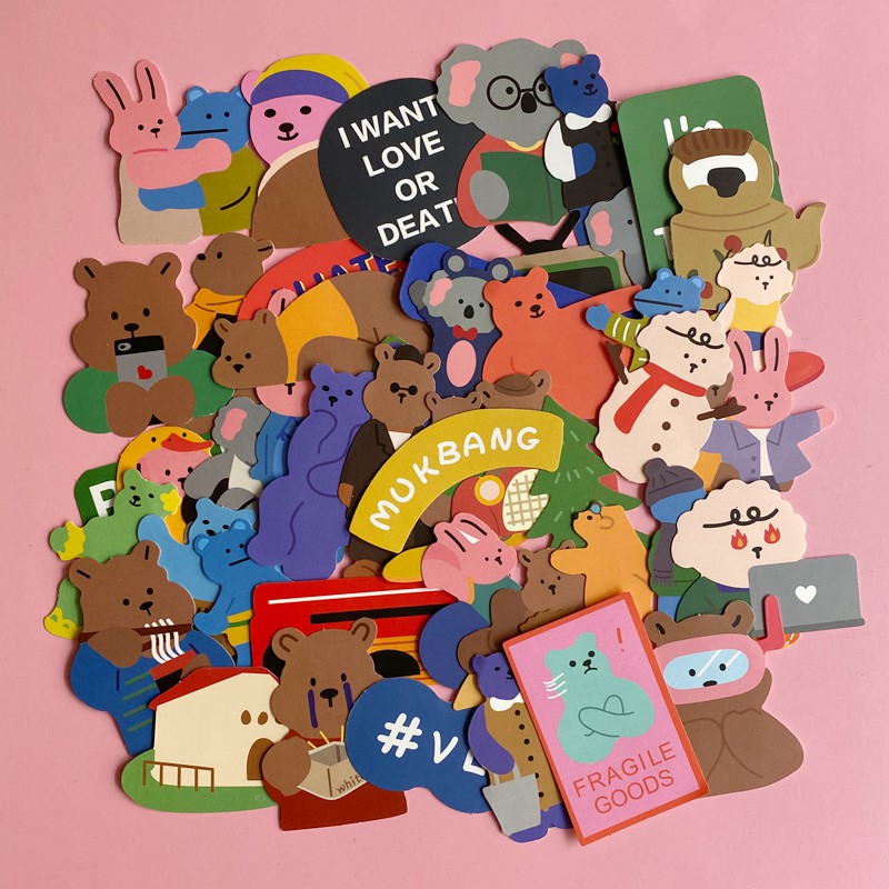 50 Pcs/Set Cute Color Korean Bear Stationery Sticker Travel Journal Luggage Waterproof Helmet ...