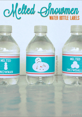 FREE Printable: Melted Snowman Water Bottle Labels Directions: 1. Remove the branded labels from bottled waters OR depending on the label, you can just put them right over existing label. 2. Print out my FREE Melted Snowman Printable. 3. Using the light grey lines as a guide, cut out Melted Snowman Bottle Labels. 4. Place a piece of double-stick table on back of both ends of the label. 5.